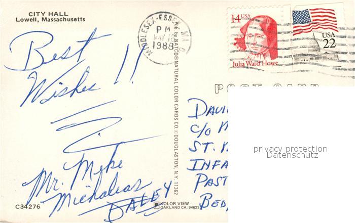 73061461 old postcard Lowell Massachusetts City Hall postalisch gelaufen Erhaltung siehe scans [WerneD78] KatCode: 14140230000000