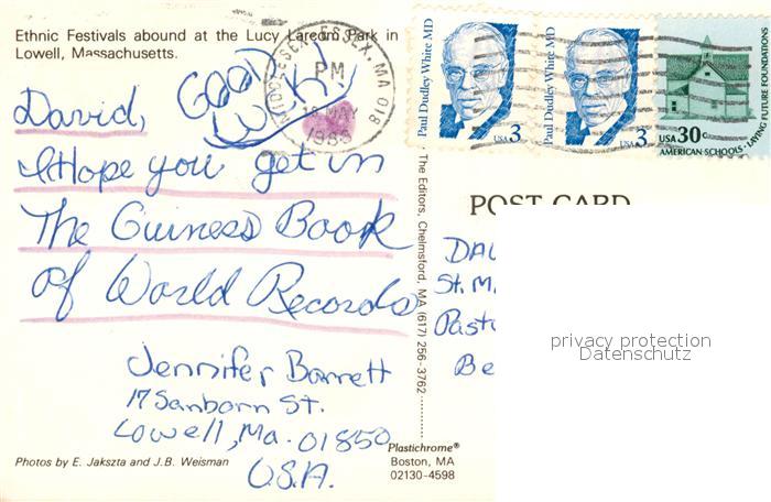 73131573 old postcard Lowell Massachusetts Ethnic Festivals postalisch gelaufen Erhaltung siehe scans [KathaD81] KatCode: 14140230000000