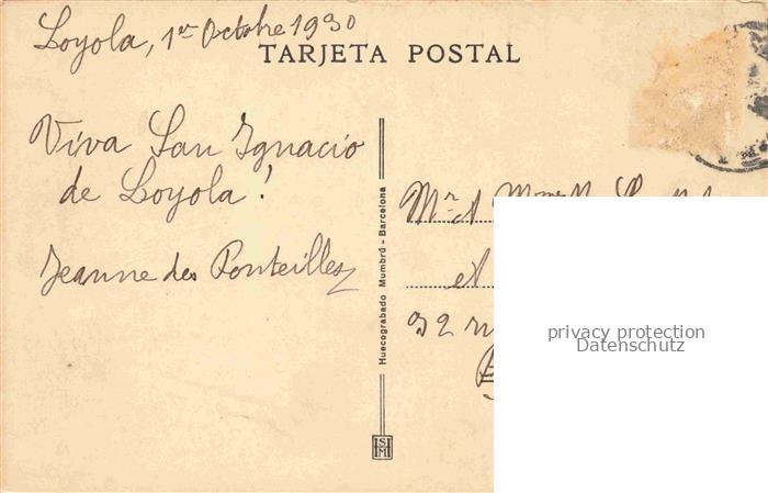 74155115 old postcard Loyola Santuario de Loyola Azpeitia Gipuzkoa ES Vista con los Conventos de Esclavas Jesus Maria y Damas Catequistas postalisch gelaufen Erhaltung siehe scans [WerneD78] KatCode: 11510