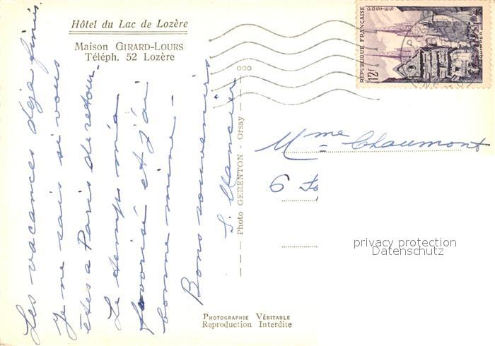 13252089 carte postale Lozere Region Hotel du Lac de Lozere postalisch gelaufen Erhaltung siehe scans [NatalD47] KatCode: 11170048148061
