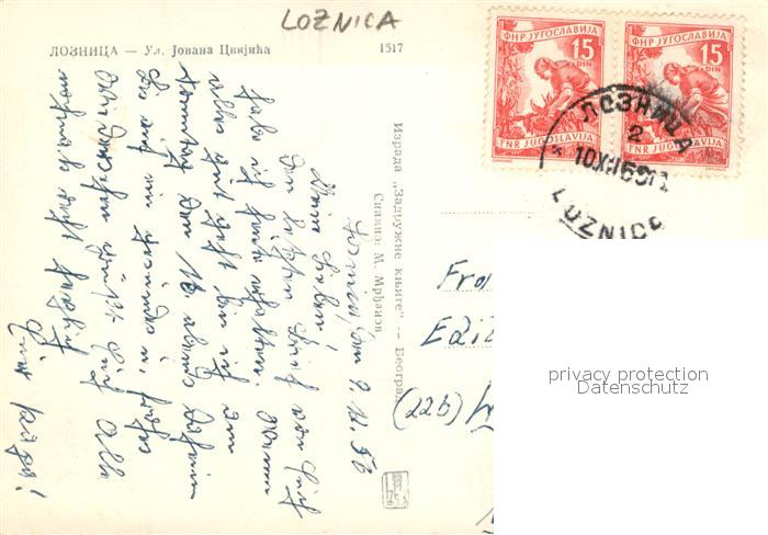 13342621 Loznica Serbija Strassenpartie postalisch gelaufen Erhaltung siehe scans [WerneD78] old postcard Wern Katcode 11480