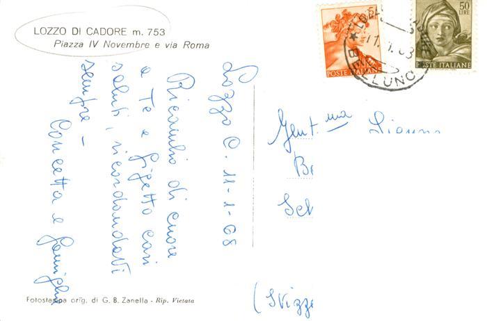 73970860 old postcard Lozzo di Cadore Belluno Veneto IT Piazza IV Novembre e Via Roma postalisch gelaufen Erhaltung siehe scans [FriedD77] KatCode: 11240