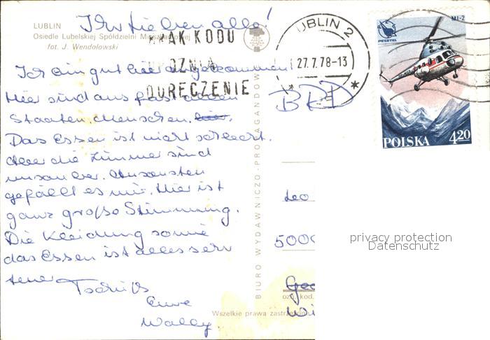 old postcard Lublin Lubelskie Wohnbloecke postalisch gelaufen Erhaltung siehe scans