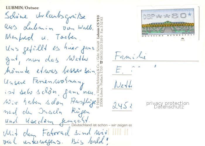 73227617 alte Postkarte Lubmin Ostseebad Fliegeraufnahme postalisch gelaufen Erhaltung siehe scans [NatalD47] KatCode: 11110013059055