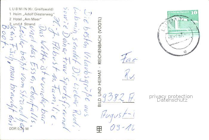 72350913 alte Postkarte Lubmin Ostseebad Heim Adolf Diesterweg Hotel Am Meer Strand postalisch gelaufen Erhaltung siehe scans KatCode: 11110013059055