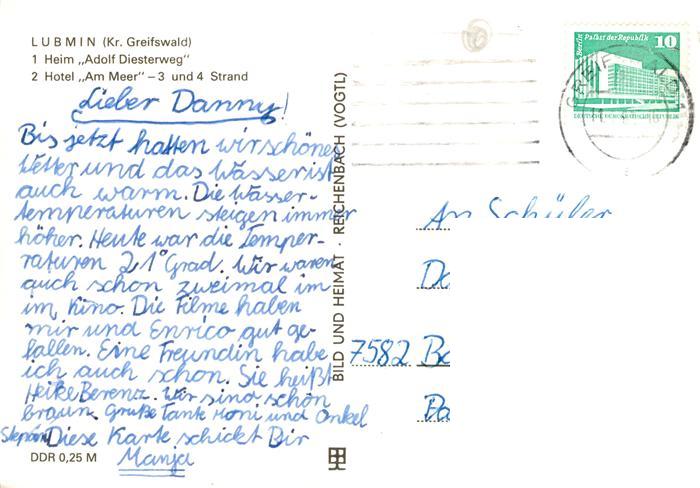 73901159 alte Postkarte Lubmin Ostseebad Heim Adolf Diesterweg Hotel Am Meer Strandpartien postalisch gelaufen Erhaltung siehe scans [FriedD77] KatCode: 11110013059055