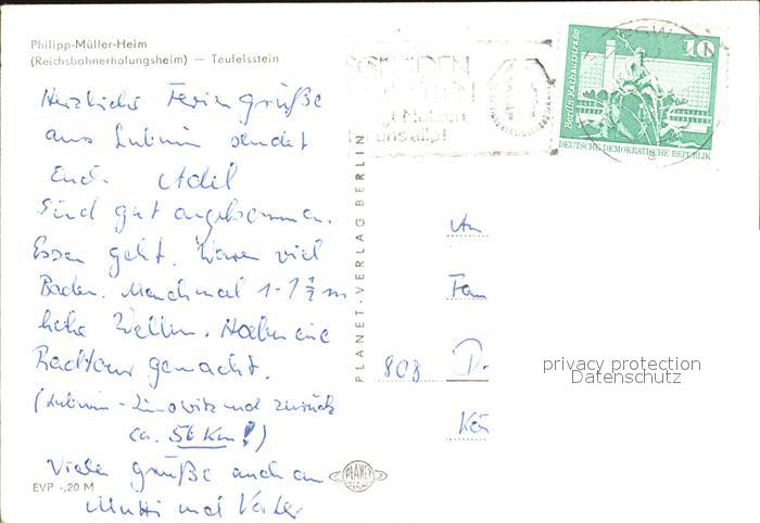 72407878 alte Postkarte Lubmin Ostseebad Philipp Mueller Heim Reichsbahnerholungsheim Strand Teufelsstein Felsen Greifswalder Bodden postalisch gelaufen Erhaltung siehe scans KatCode: 11110013059055