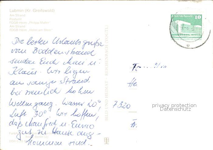 72136022 alte Postkarte Lubmin Ostseebad Strand Postamt FDGB Heim Philipp Mueller Hotel am Meer postalisch gelaufen Erhaltung siehe scans KatCode: 11110013059055