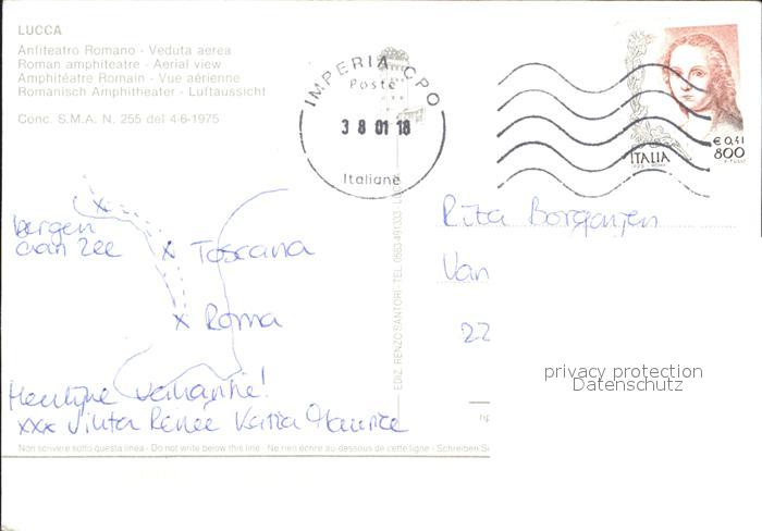 old postcard Lucca Fliegeraufnahme roemisches Amphitheater postalisch gelaufen Erhaltung siehe scans