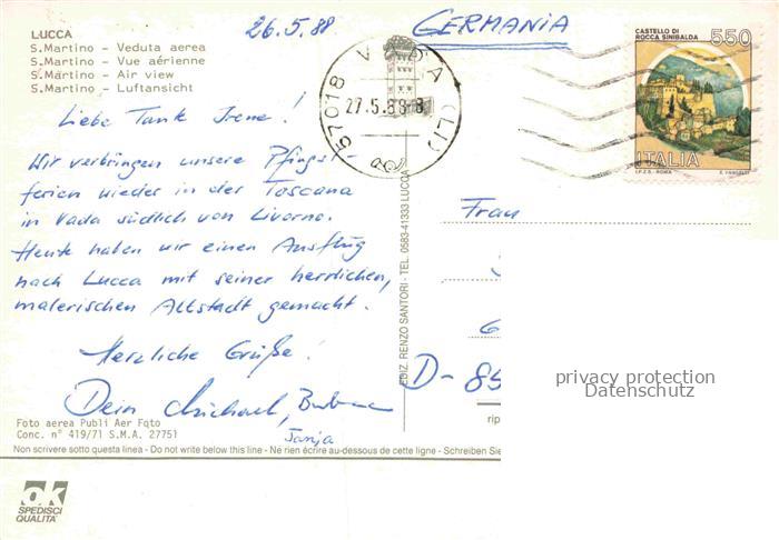 74086085 old postcard LUCCA Toscana IT San Martino Veduta aerea postalisch gelaufen Erhaltung siehe scans [WerneD78] KatCode: 11240