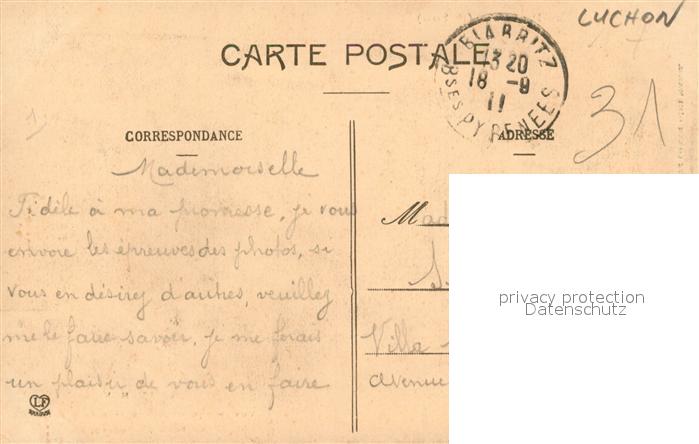 13572914 carte postale Luchon Haute-Garonne postalisch gelaufen Erhaltung siehe scans [PaolaD17] KatCode: 11170031231042