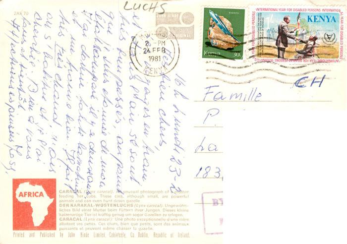 74036974 alte Postkarte Luchs Lynx Lince– Caracal Karakal Wuesten postalisch gelaufen Erhaltung siehe scans [IrynaD87] KatCode: 22540000000000