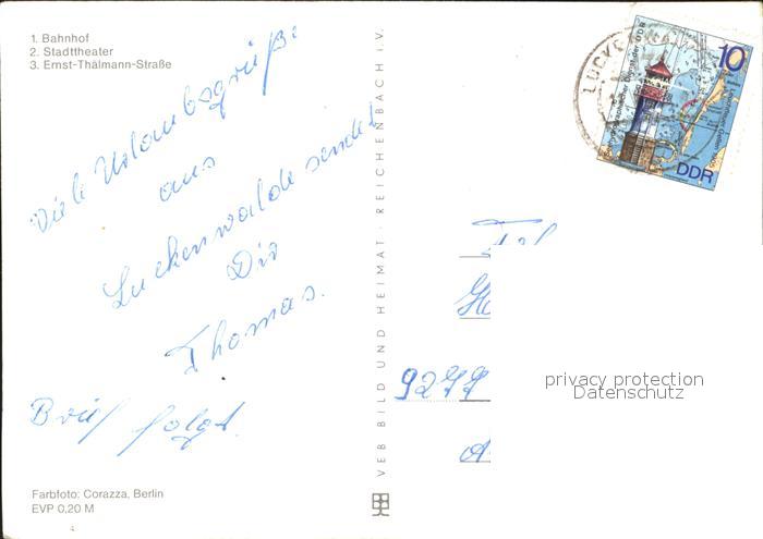 72382725 alte Postkarte Luckenwalde Bahnhof Stadttheater Ernst-Thaelmann-Strasse postalisch gelaufen Erhaltung siehe scans KatCode: 11110012072232