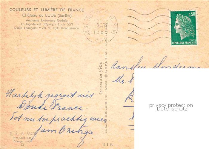 12865130 carte postale Lude Le Chateau du Lude postalisch gelaufen Erhaltung siehe scans [LiesaD40] KatCode: 11170072172176