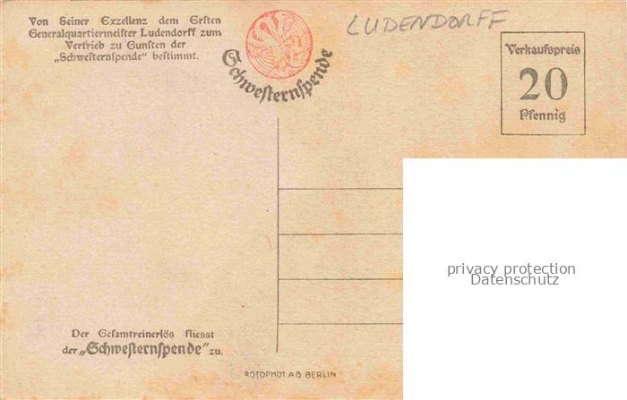 74036121 LUDENDORFF Erich Militaria Generaele Stab Generalquartiermeister postalisch nicht gelaufen Erhaltung siehe scans [SanaeD93] KatCode: 22300150150150