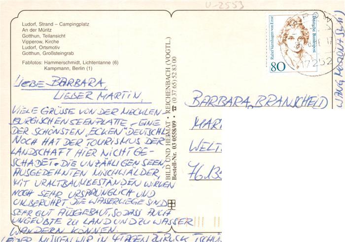 73947277 alte Postkarte Ludorf Mueritz Strand Campingplatz Gotthun Viepperow Kirche Ortsmotiv Gotthun postalisch gelaufen Erhaltung siehe scans [WerneD78] KatCode: 11110013056039