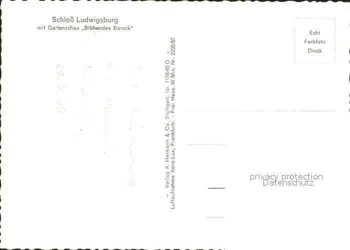 72229945 Ludwigsburg Fliegeraufnahme Schloss mit Gartenschau postalisch nicht gelaufen Erhaltung siehe scans KatCode: 11110008118048