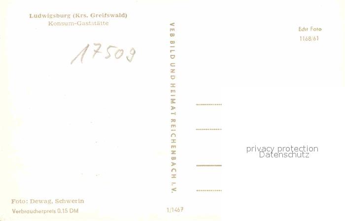 72634672 Ludwigsburg Prenzlau Konsum Gaststaette postalisch nicht gelaufen Erhaltung siehe scans [KathaD79] KatCode: 11110012073490