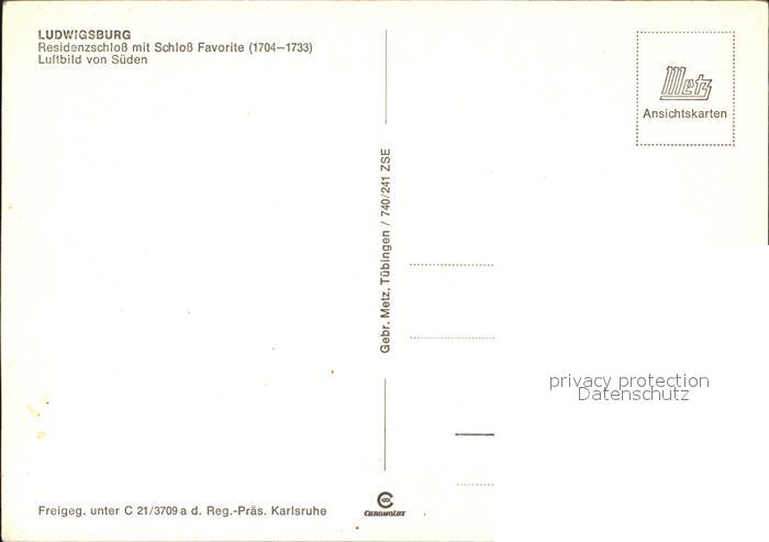 Ludwigsburg Residenzschloss Schloss Favorite Luftbild postalisch nicht gelaufen Erhaltung siehe scans