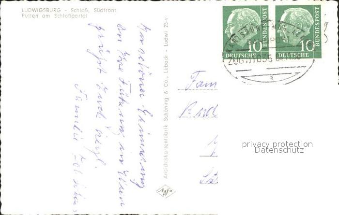 72295130 alte Postkarte Ludwigsburg Schloss Putten am Portal postalisch gelaufen Erhaltung siehe scans KatCode: 11110008118048