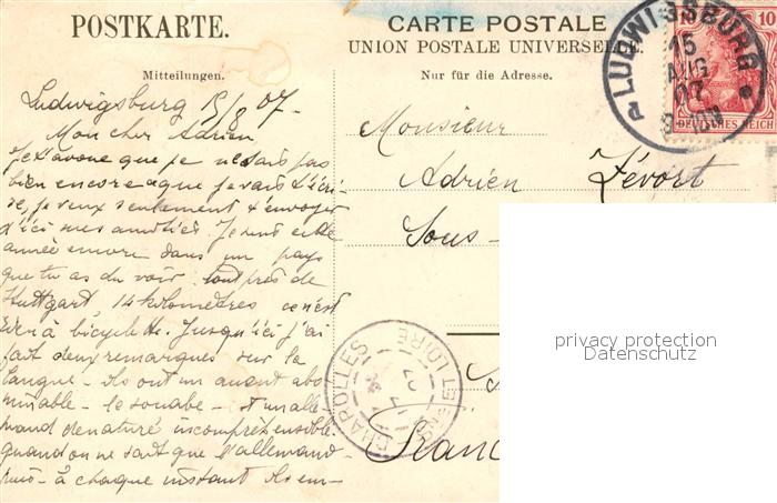 43492911 alte Postkarte Ludwigsburg W?rttemberg Kgl. Schloss postalisch gelaufen Erhaltung siehe scans [LiesaD40] KatCode: