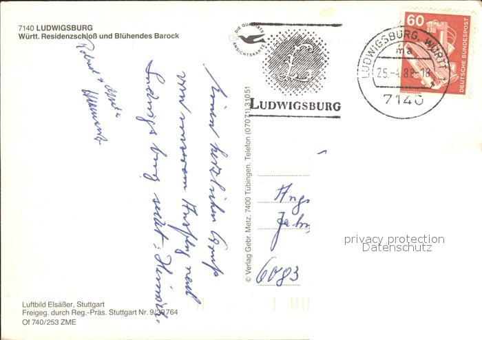 72032879 alte Postkarte Ludwigsburg Wuertt. Residenzschloss Bluehendes Barock Fliegeraufnahme postalisch gelaufen Erhaltung siehe scans KatCode: 11110008118048