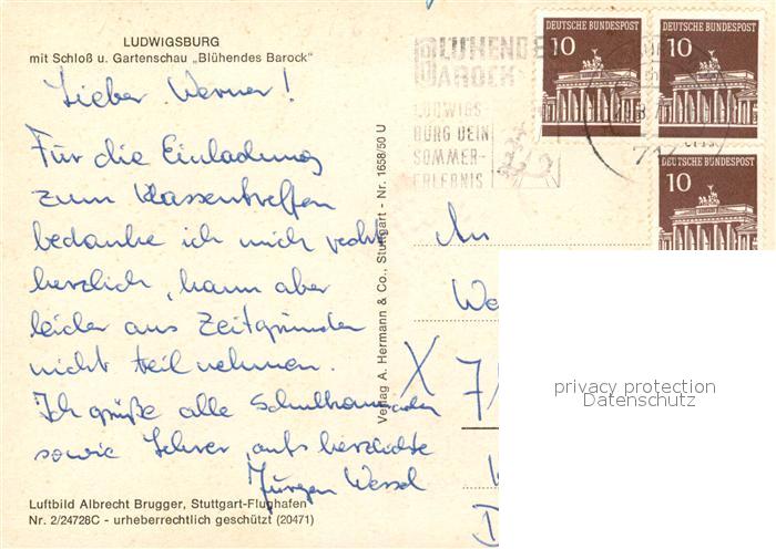 73079330 alte Postkarte Ludwigsburg Wuerttemberg Fliegeraufnahme Schloss Gartenschau Bluehendes Barock postalisch gelaufen Erhaltung siehe scans [KathaD81] KatCode: 11110008118048