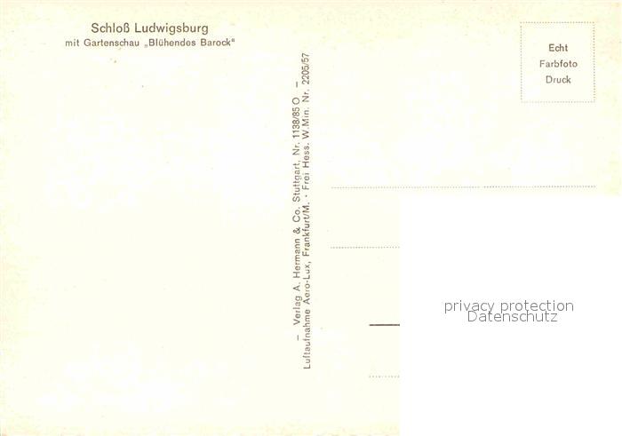 72898279 Ludwigsburg Wuerttemberg Fliegeraufnahme Schloss Gartenschau Bluehendes Barock postalisch nicht gelaufen Erhaltung siehe scans [AndreD76] KatCode: 11110008118048