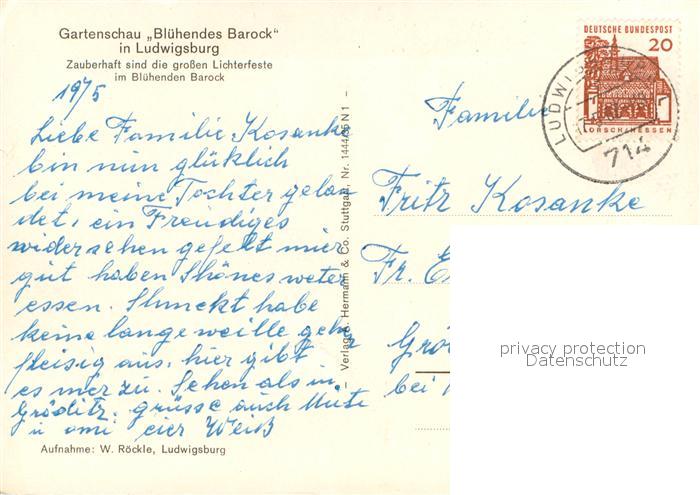 73746175 alte Postkarte Ludwigsburg Wuerttemberg Gartenschau Bluehendes Barock Fuerstenbau des Schlosses Lichterfest postalisch gelaufen Erhaltung siehe scans [WerneD78] KatCode: 11110008118048