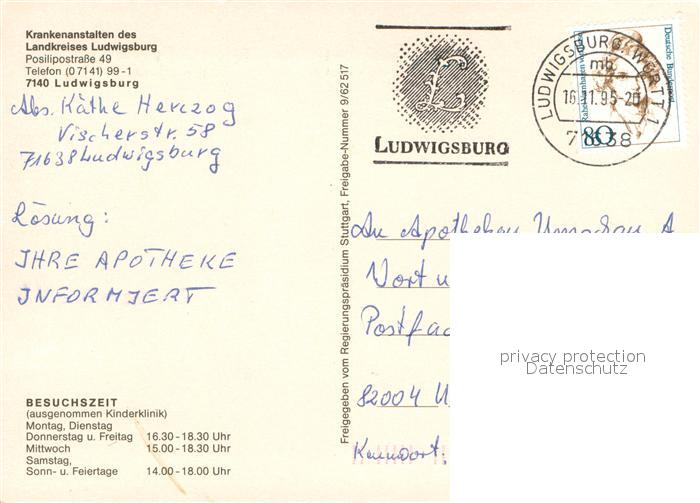 73647622 alte Postkarte Ludwigsburg Wuerttemberg Krankenanstalten des Landkreises Ludwigsburg Fliegeraufnahme postalisch gelaufen Erhaltung siehe scans [FriedD77] KatCode: 11110008118048
