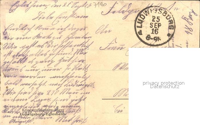 31727374 alte Postkarte Ludwigsburg Wuerttemberg Kriegsgefangenen Lager postalisch gelaufen Feldpost Erhaltung siehe scans KatCode: 11110008118048