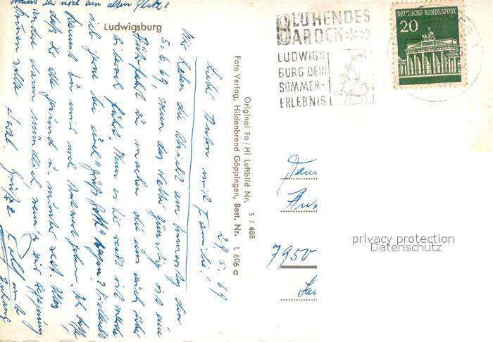 73172460 alte Postkarte Ludwigsburg Wuerttemberg Ludwigsburg Schloss Fliegeraufnahme postalisch gelaufen Erhaltung siehe scans [NatalD47] KatCode: 11110008118048