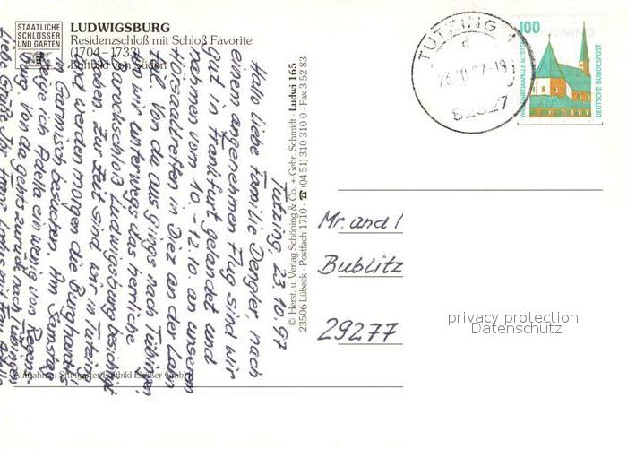 73026229 alte Postkarte Ludwigsburg Wuerttemberg Residenzschloss Schloss Favorite Fliegeraufnahme postalisch gelaufen Erhaltung siehe scans [PaolaD17] KatCode: 11110008118048