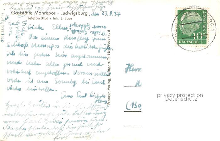 72920218 alte Postkarte Ludwigsburg Wuerttemberg Restaurant Monrepos Schwaene Schloss postalisch gelaufen Erhaltung siehe scans [LiesaD40] KatCode: 11110008118048