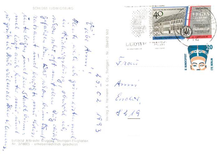 73879010 alte Postkarte Ludwigsburg Wuerttemberg Schloss Ludwigsburg Fliegeraufnahme postalisch gelaufen Erhaltung siehe scans [WerneD78] KatCode: 11110008118048