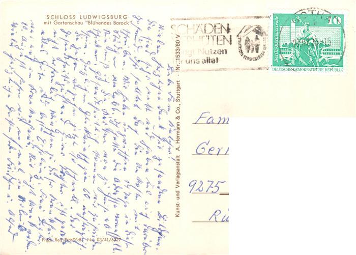 73878383 alte Postkarte Ludwigsburg Wuerttemberg Schloss mit Gartenschau Bluehendes Barock postalisch gelaufen Erhaltung siehe scans [WerneD78] KatCode: 11110008118048