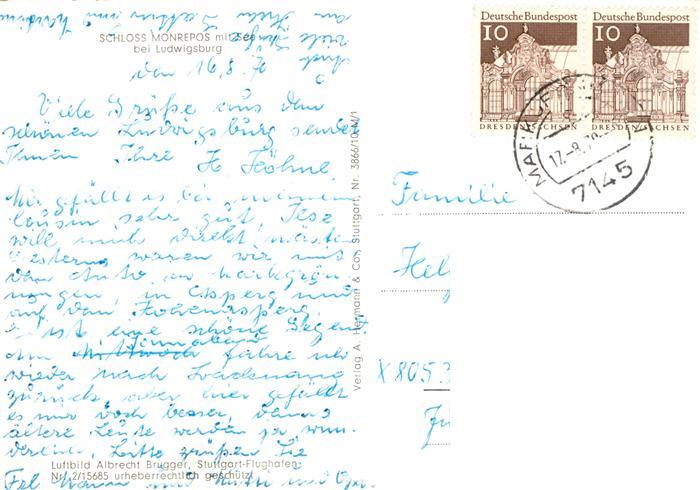 73907399 alte Postkarte Ludwigsburg Wuerttemberg Schloss Monrepos mit See Fliegeraufnahme postalisch gelaufen Erhaltung siehe scans [WerneD78] KatCode: 11110008118048