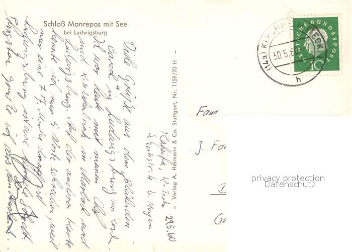 73242816 alte Postkarte Ludwigsburg Wuerttemberg Schloss Monrepos mit See postalisch gelaufen Erhaltung siehe scans [LiesaD40] KatCode: 11110008118048
