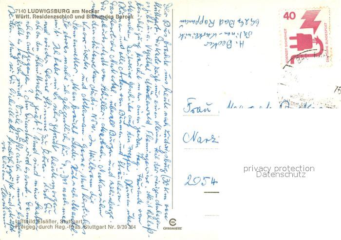73721374 alte Postkarte Ludwigsburg Wuerttemberg Wuerttembergisches Residenzschloss Bluehendes Barock postalisch gelaufen Fliegeraufnahme Erhaltung siehe scans [FriedD77] KatCode: 11110008118048