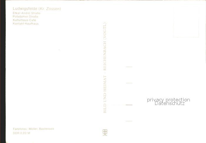 72326121 alte Postkarte Ludwigsfelde Etkar Andre Str Potsdamer Str Kulturhaus Cafe Kontakt Kaufhaus postalisch gelaufen Erhaltung siehe scans KatCode: 11110012072240