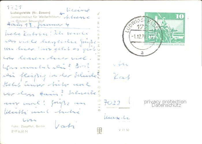 72077050 alte Postkarte Ludwigsfelde Zentralinstitut fuer Weiterbildung postalisch gelaufen Erhaltung siehe scans KatCode: 11110012072240