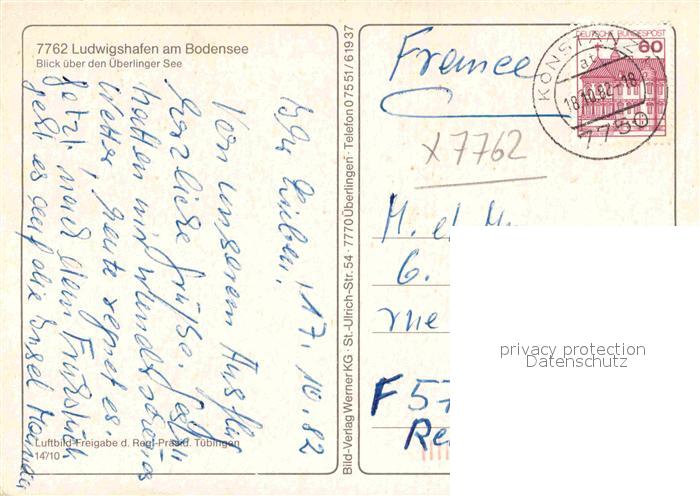 72654583 alte Postkarte Ludwigshafen Bodensee Blick ueber den ueberlinger See Fliegeraufnahme postalisch gelaufen Erhaltung siehe scans [FriedD77] KatCode: 11110008335098