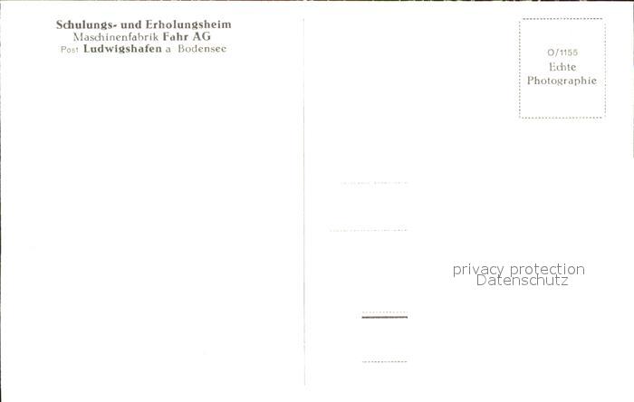 41759638 Ludwigshafen Bodensee Schulungs- und Erholungsheim Fahr AG postalisch nicht gelaufen Erhaltung siehe scans KatCode: 11110008335098