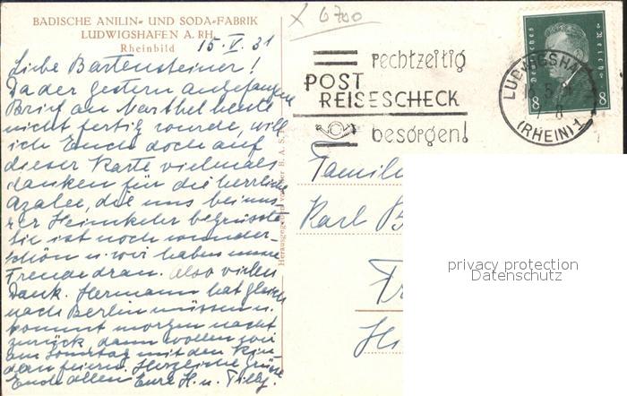 41756829 alte Postkarte Ludwigshafen Rhein Badische Anilin und Sodafabrik BASF Industrie Dampfer Rheinbild Kuenstlerkarte Kroewerath postalisch gelaufen Erhaltung siehe scans KatCode: 11110007314000
