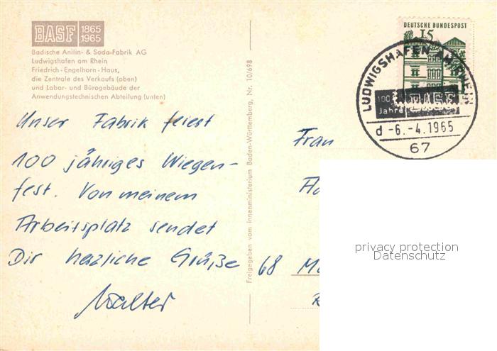 72663248 alte Postkarte Ludwigshafen Rhein BASF AG Fliegeraufnahme postalisch gelaufen Erhaltung siehe scans [NatalD47] KatCode: 11110007314000