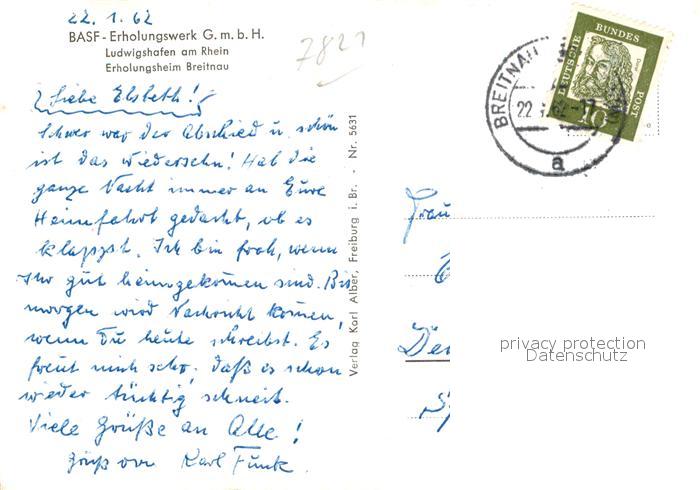 73616827 alte Postkarte Ludwigshafen Rhein BASF Erholungswerk Erholungsheim Breitnau postalisch gelaufen Erhaltung siehe scans [KathaD81] KatCode: 11110007314000