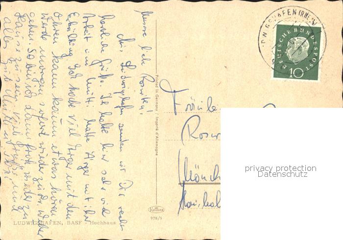72051764 alte Postkarte Ludwigshafen Rhein BASF Hochhaus postalisch gelaufen Erhaltung siehe scans KatCode: 11110007314000