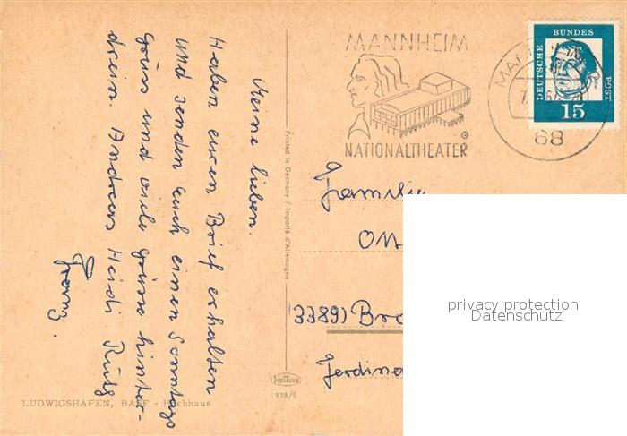 73295263 alte Postkarte Ludwigshafen Rhein BASF Hochhaus postalisch gelaufen Erhaltung siehe scans [WerneD78] KatCode: 11110007314000