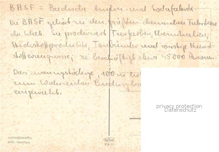 72639114 Ludwigshafen Rhein BASF Hochhaus postalisch nicht gelaufen Erhaltung siehe scans [WerneD78] KatCode: 11110007314000