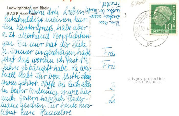 43350639 alte Postkarte Ludwigshafen Rhein BASF Hochhaus Dampfer Rheinschifffahrt postalisch gelaufen Erhaltung siehe scans [FriedD77] KatCode: 11110007314000